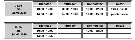 Mi. 10.06. 2026 - 10:00-13:00 / 15:00-17:00 Uhr