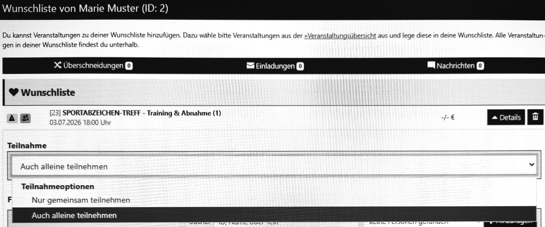 » Wähle die Veranstaltung aus, die du mit jemanden
